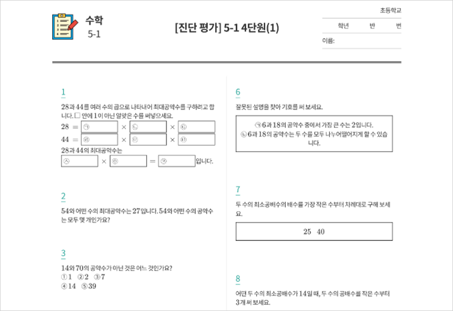 수학 계산, 문장제 학습지를 통해 학생들의 기초를 탄탄하게, 부족한 부분을 빈틈없이 쏙쏙 채워줄 수 있어요.