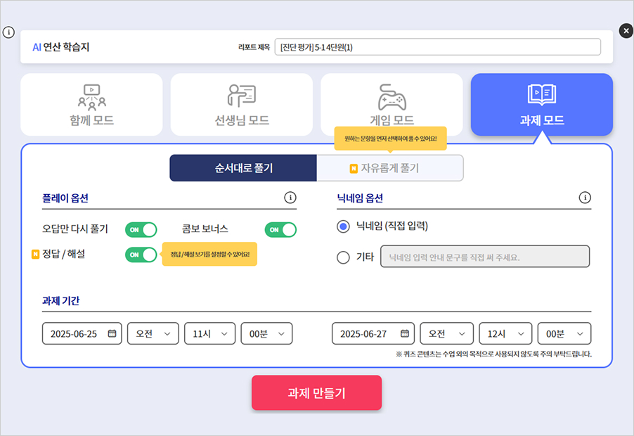 비상 교과서에 딱 맞는 차시별 연산 학습지를 다양한 모드로 제공해요.