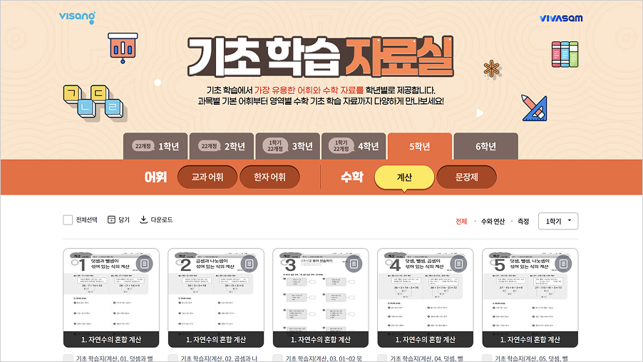1~6학년 수학의 기초 학습 능력을 기를 수 있는 학습 자료 제공!