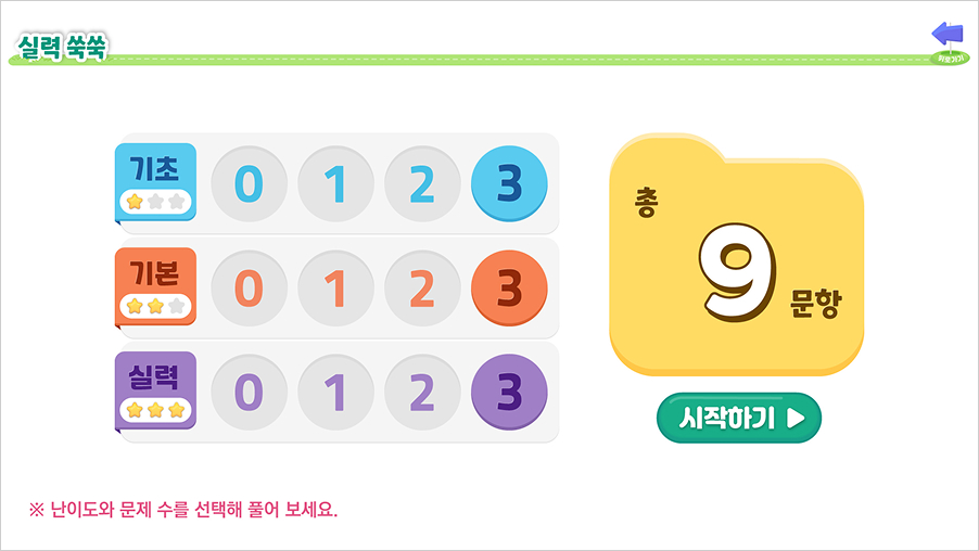 학습한 내용을 난이도별로 한 번 더 익힐 수 있어요.